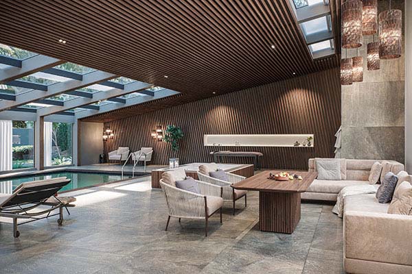 У гармонії з природою – кубоподібна рейка з текстурою дерева в інтер'єрі басейну