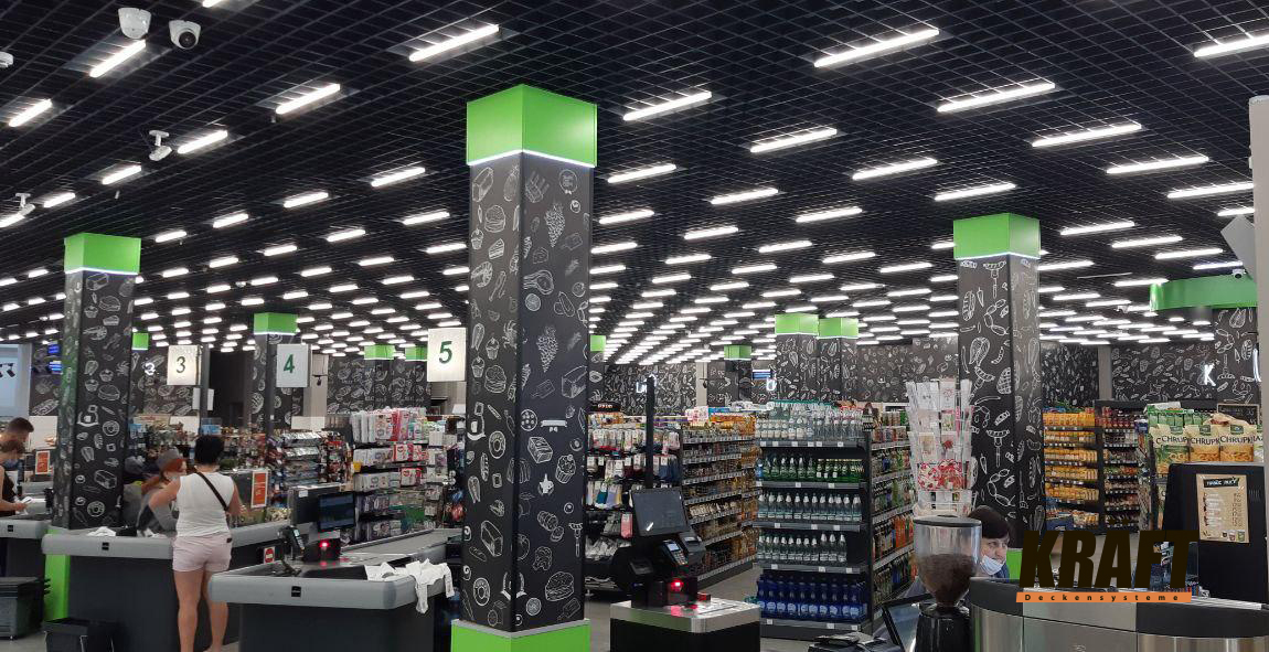 Висновок: підвісні стелі грильято KRAFT — оптимальний варіант для магазинів і ТРЦ, де на першому місці функціональність.