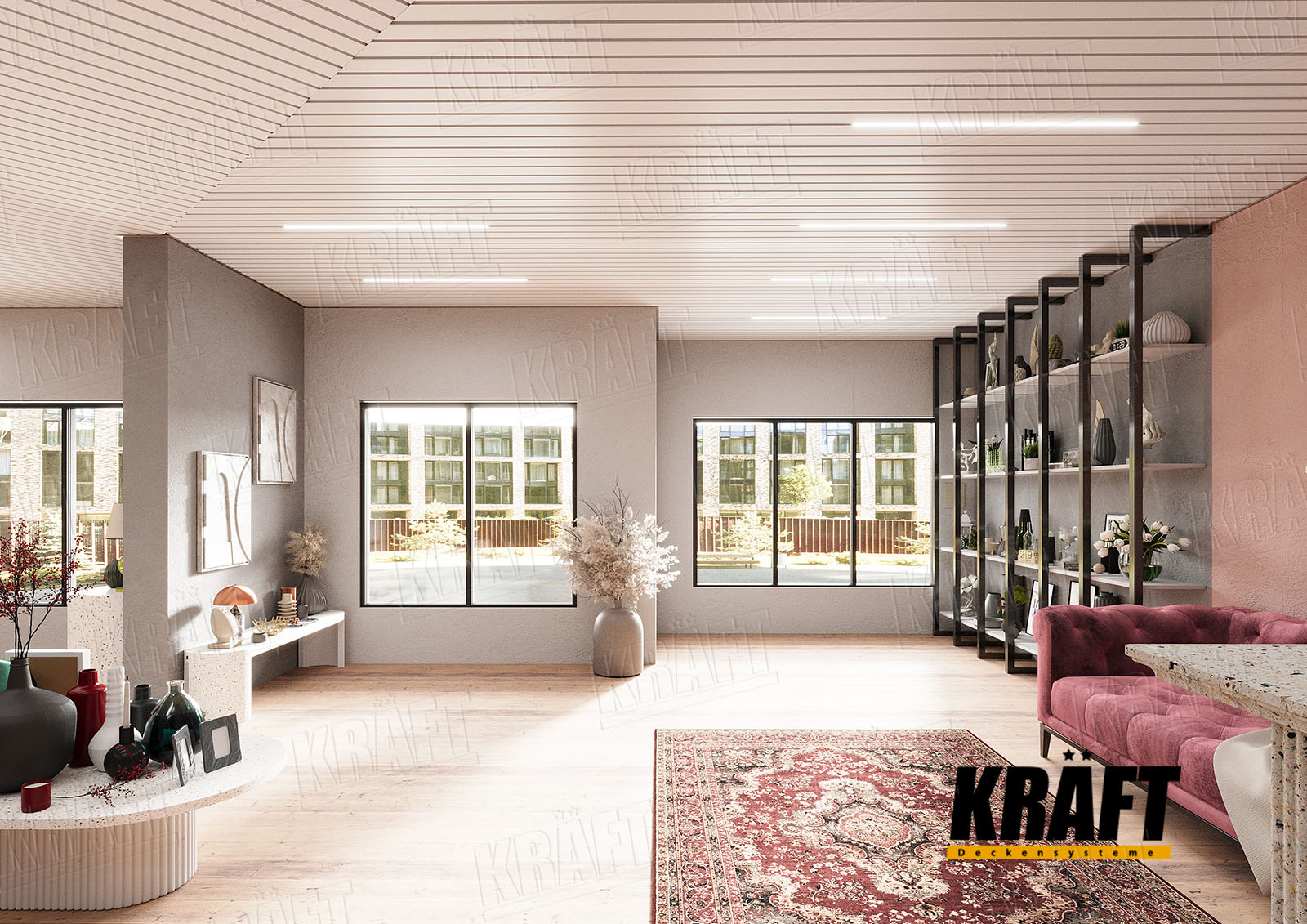 • Якщо важливий преміальний дизайн і гнучкість в оформленні простору — ідеальним вибором стануть рейкові стелі KRAFT.