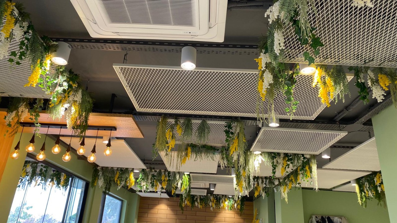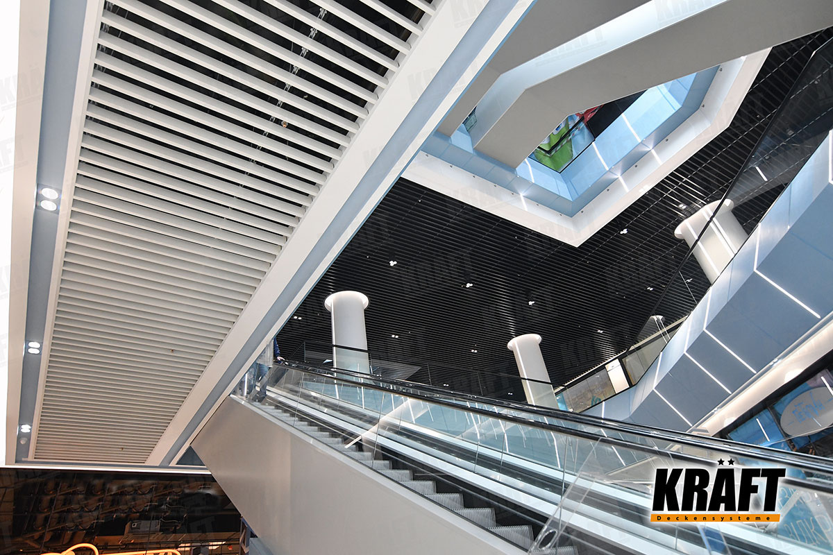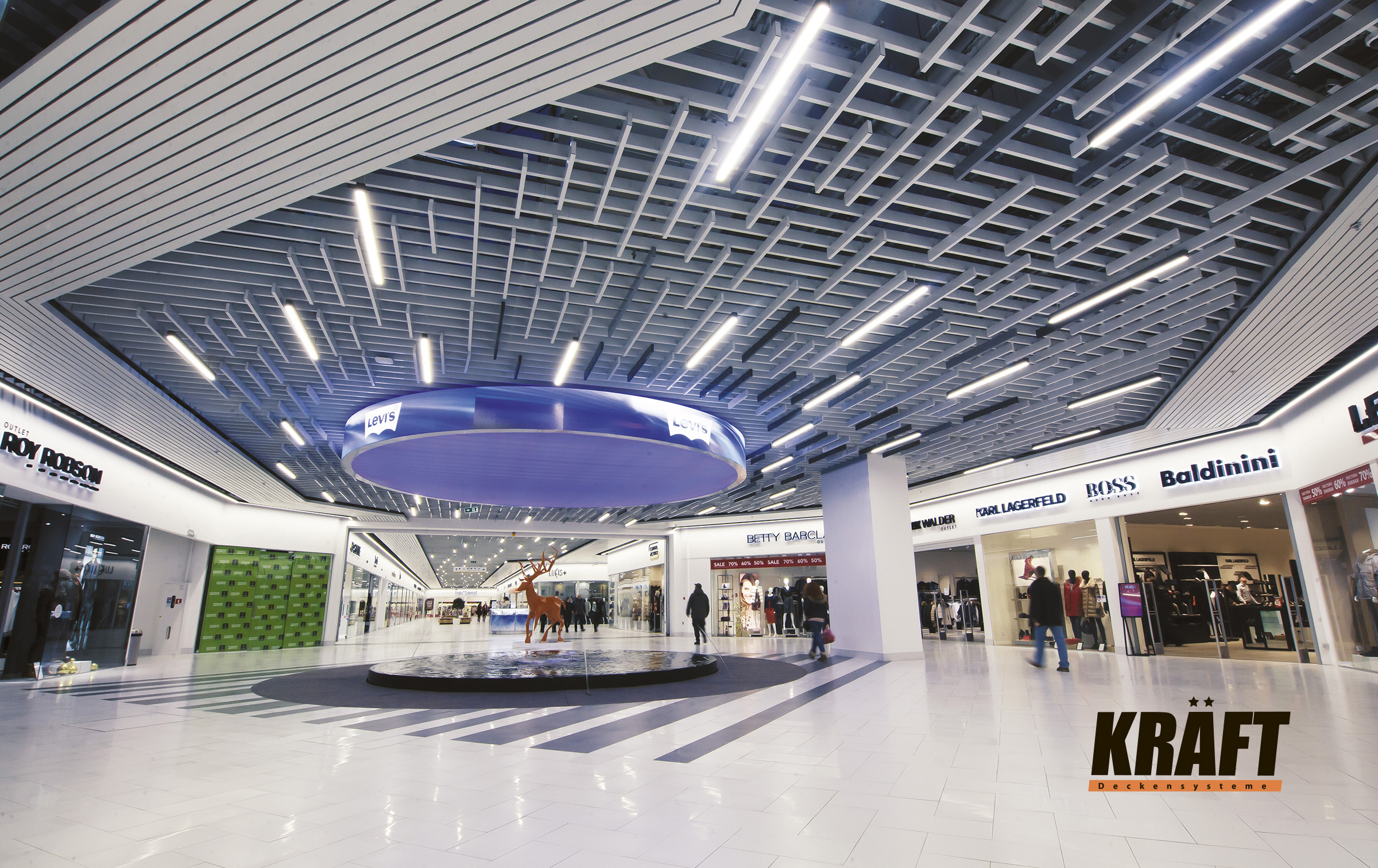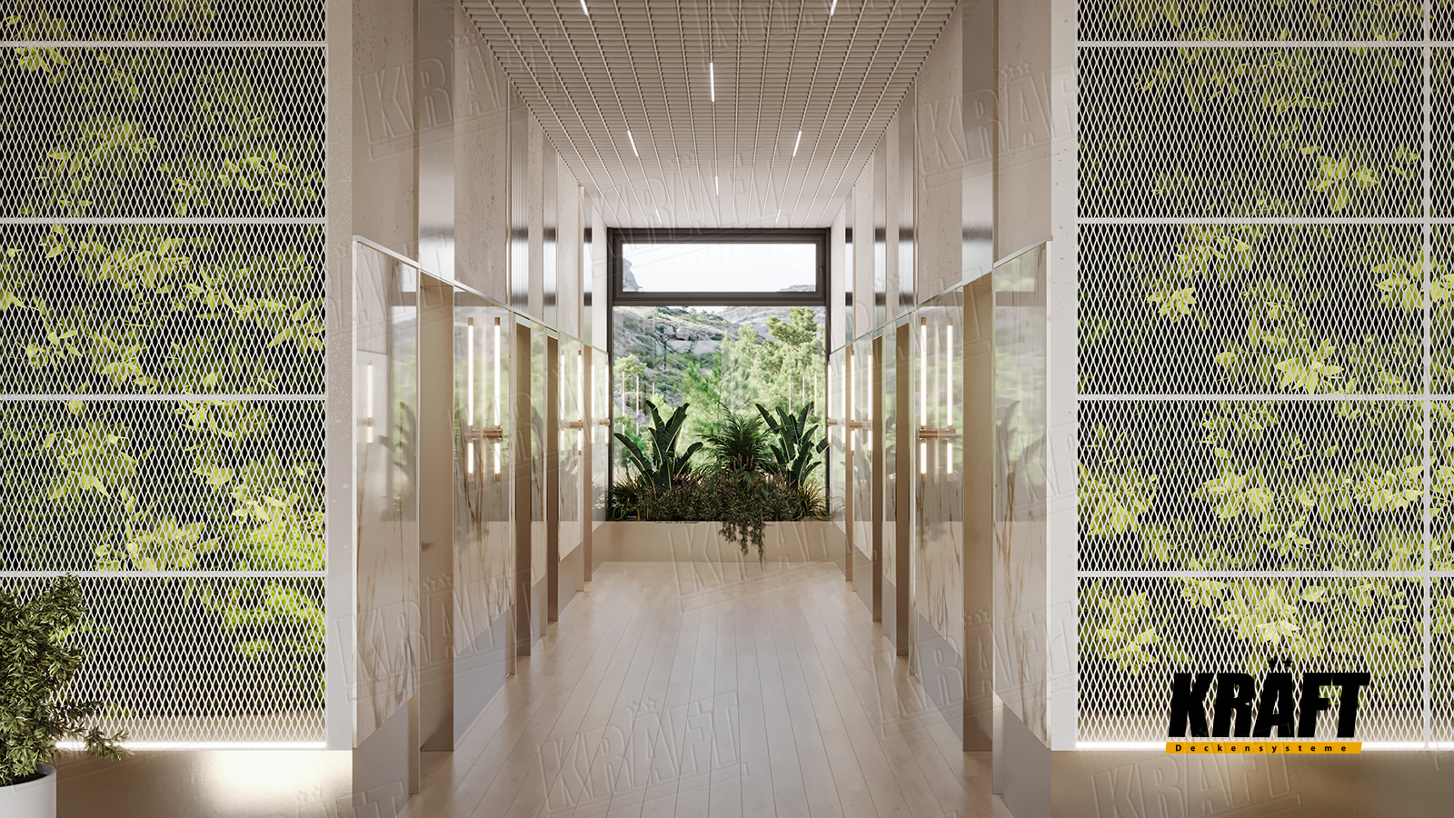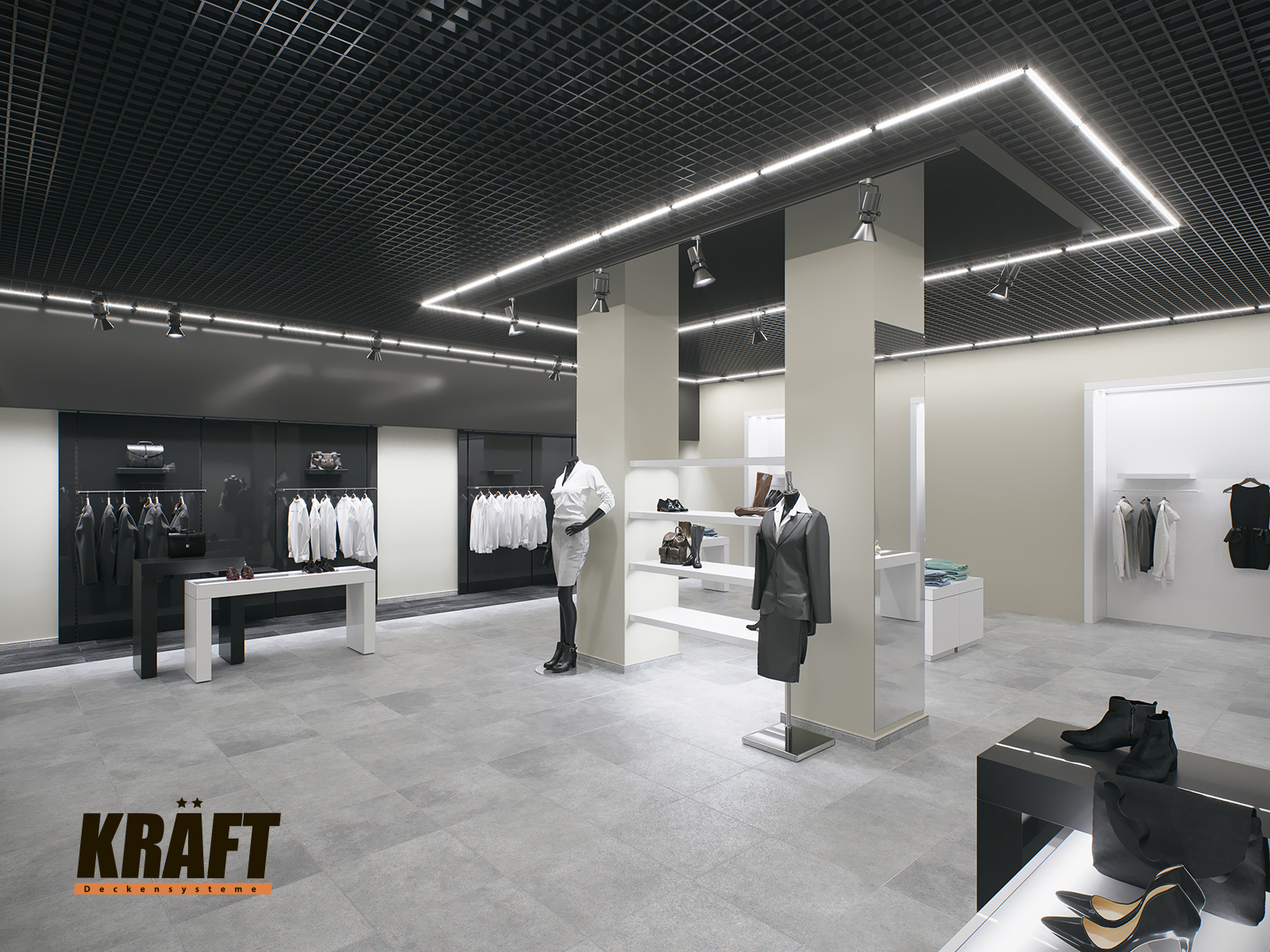 Висновок: панелі з просічно-витяжної сітки KRAFT Mesh чудово підходять для магазинів і ТРЦ, а сфера їх застосування не обмежується стельовими системами.