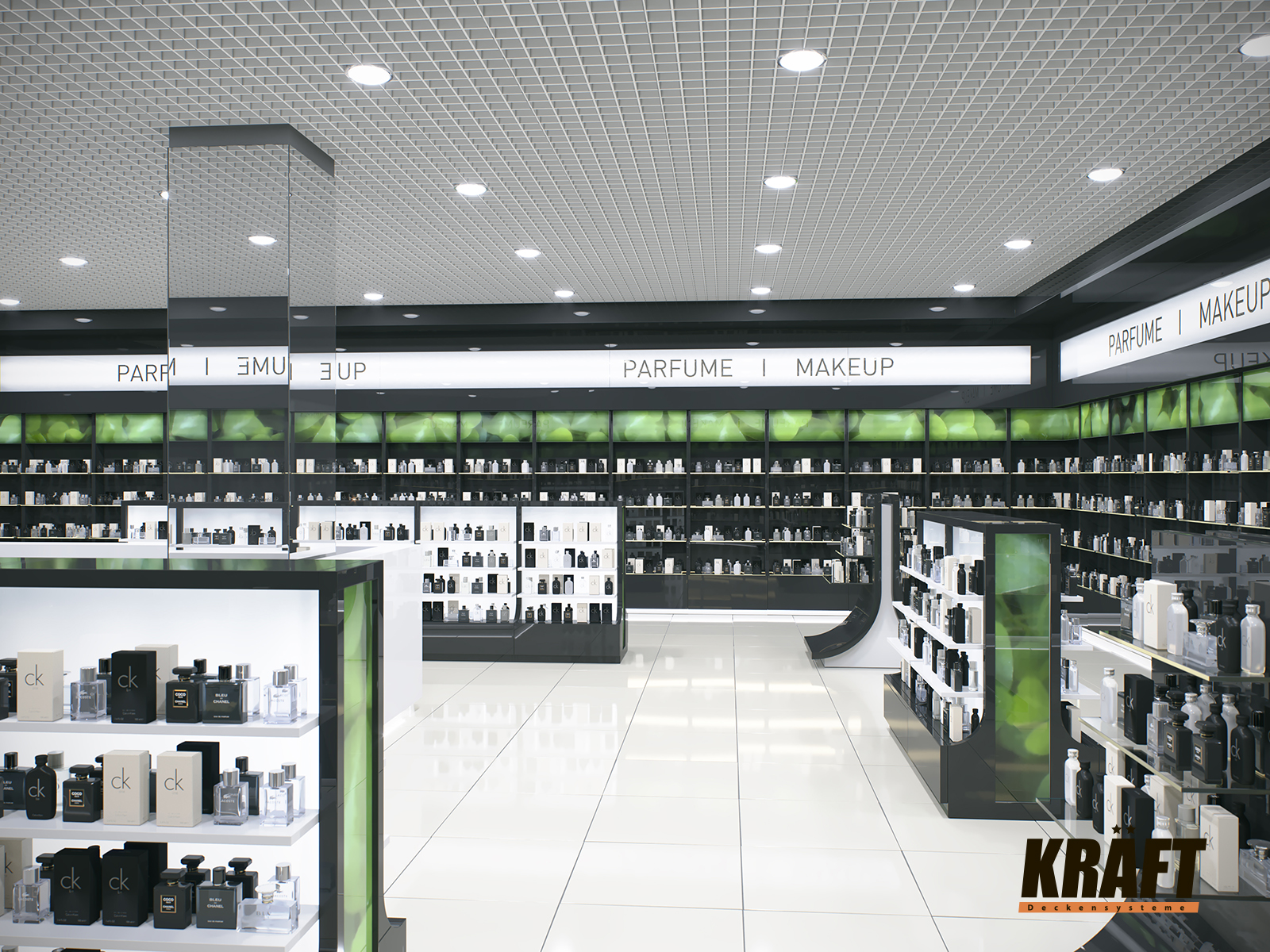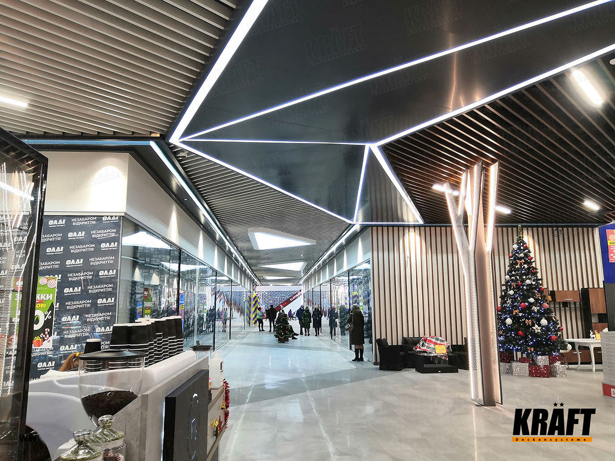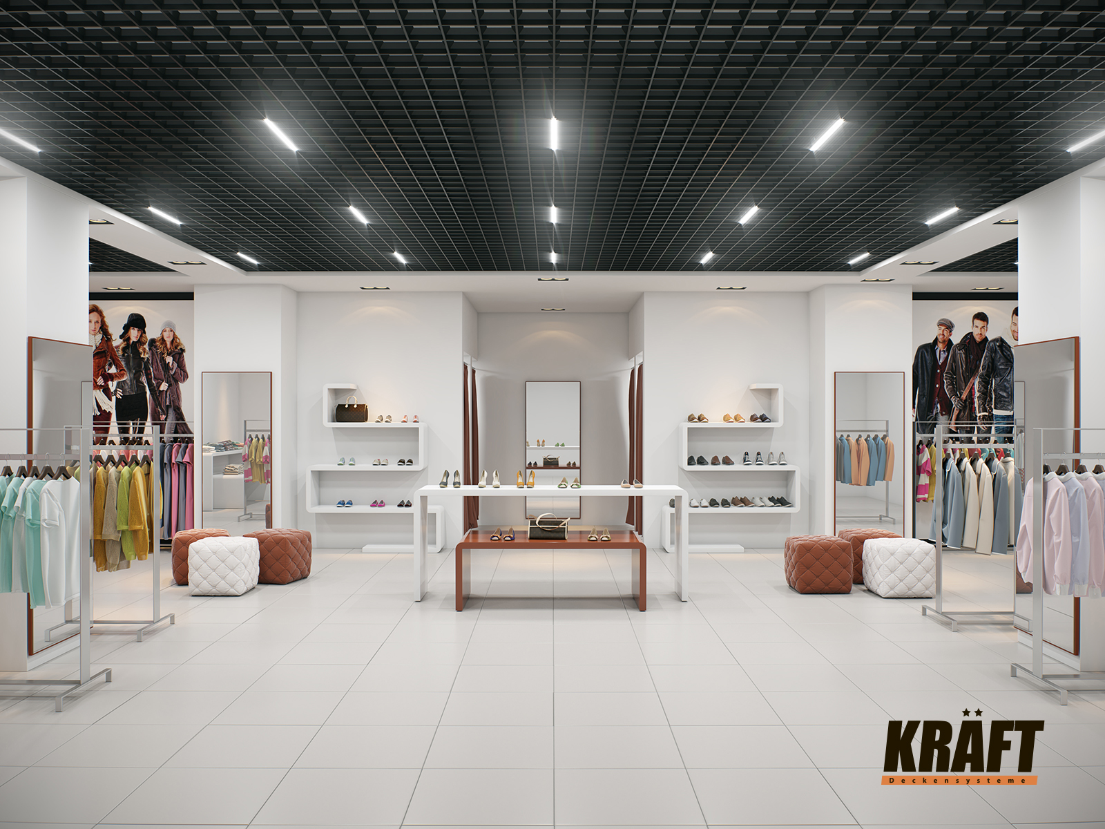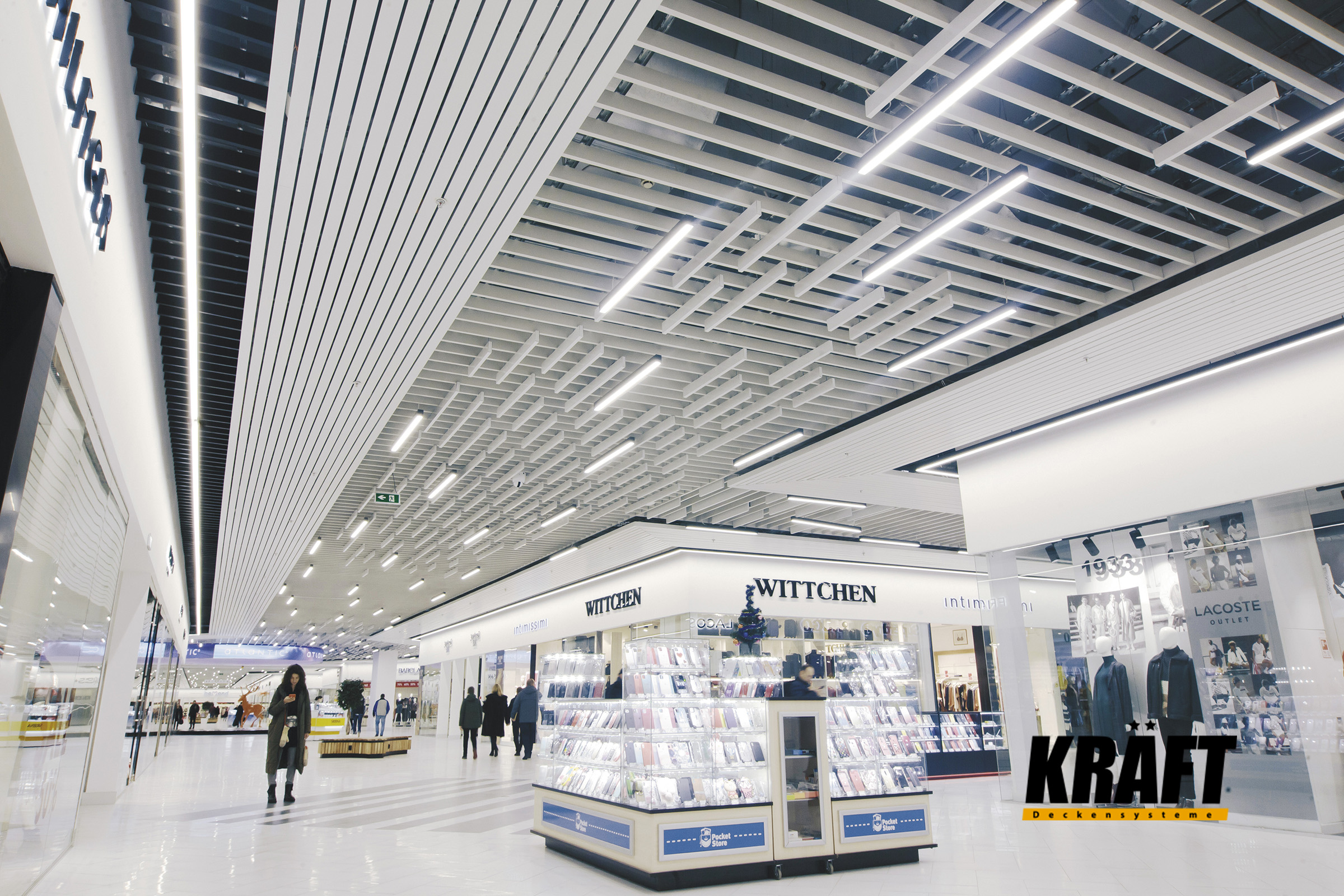 Особливості застосування різних видів підвісних стель KRAFT у магазинах і торгових центрах