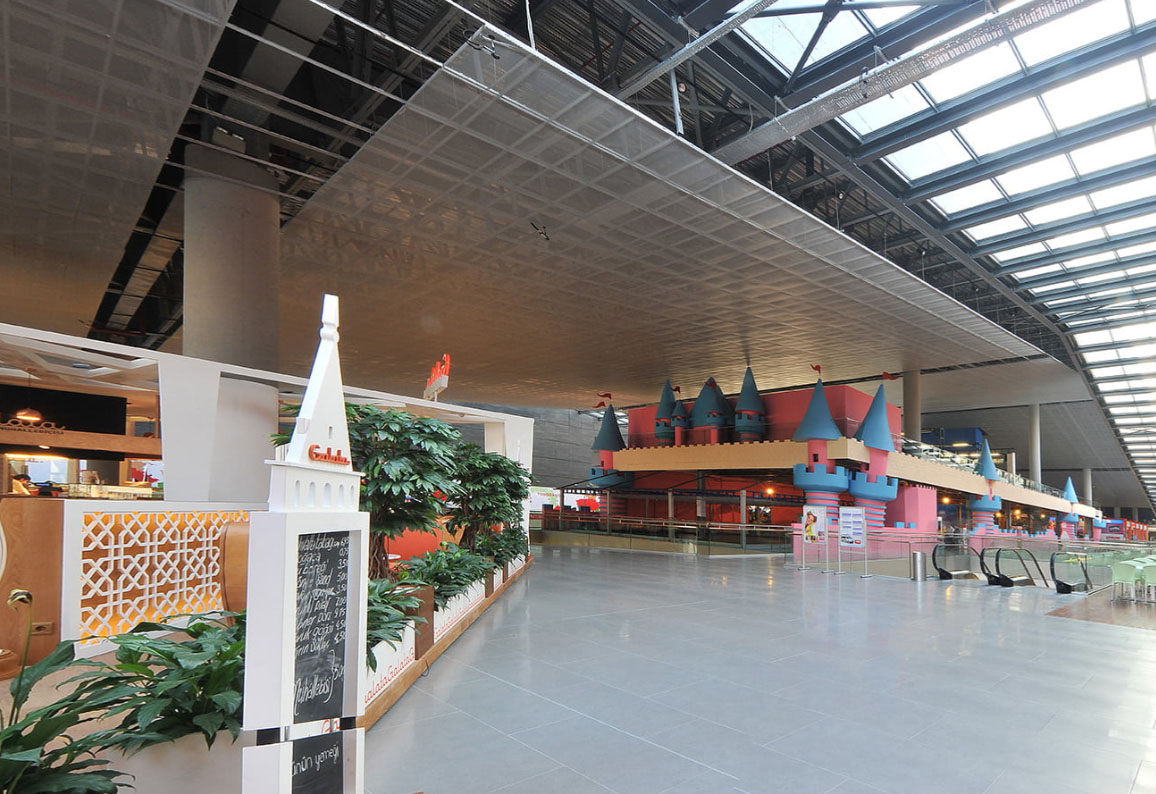 Акустичні підвісні стелі застосовуються в торгових залах і ТРЦ вкрай рідко. Основна причина — нульова прозорість, що суперечить нормам пожежної безпеки для громадських приміщень. Однак легкий монтаж, невисока вартість і швидкий доступ до комунікацій роблять такі стелі зручним рішенням для певних зон або в комбінації з іншими системами.