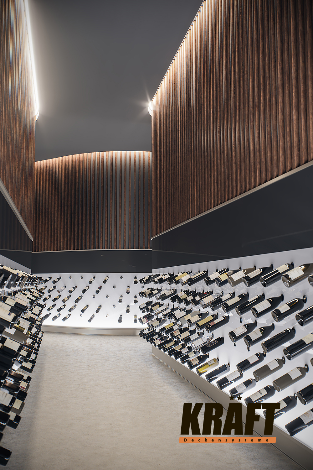 Дизайнерські можливості рейкових стель KRAFT практично безмежні. Можна використовувати рейки різної ширини й висоти, змінювати їх напрямок, комбінувати кольори, створювати унікальні конструкції. Додаткові можливості відкривають гнучка та одинарна траверси, що дає змогу реалізовувати нестандартні дизайнерські ідеї.